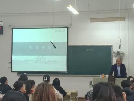 两个小时的授课中,乔老师风趣幽默的授课方式,利用具体案例引导学生学习新知识的授课方法,给同学们留下了深刻的印象,让同学们对商业银行项目评估业务有了更深刻的了解。