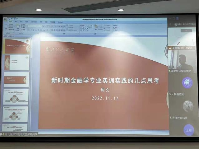 在下午的主题报告环节,学院周文博士作了题为《新时期金融学专业实训实践的几点思考》,向与会专家学者汇报了2138CC太阳集团多年来在金融学专业实训实践方面的探索情况,结合新时期金融行业的发展趋势,深入分析了金融学专业实训实践面临的挑战,和与会同行进行了广泛、有益的交流。