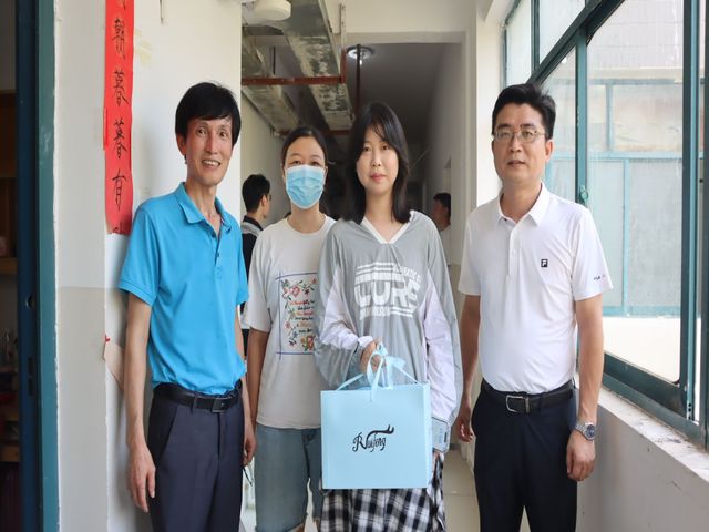 (图为学院党委书记姜璐、党委副书记高师慰问新生)