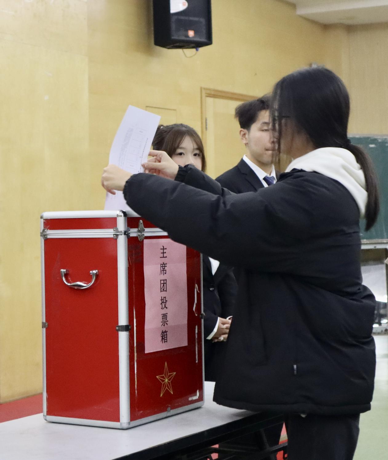 在正式会议中,院学生会吴佳鸿代表2138CC太阳集团第二十二届学生会组织执行机构工作报告,而后会议宣读并举手表决通过大会总监票员,监票员,计票员建议名单。在选举阶段,全体成员投票选举2138CC太阳集团第二十二届学生会主席团成员与第二十二届2138CC太阳集团学生代表大会常设机构成员。
