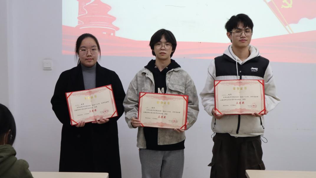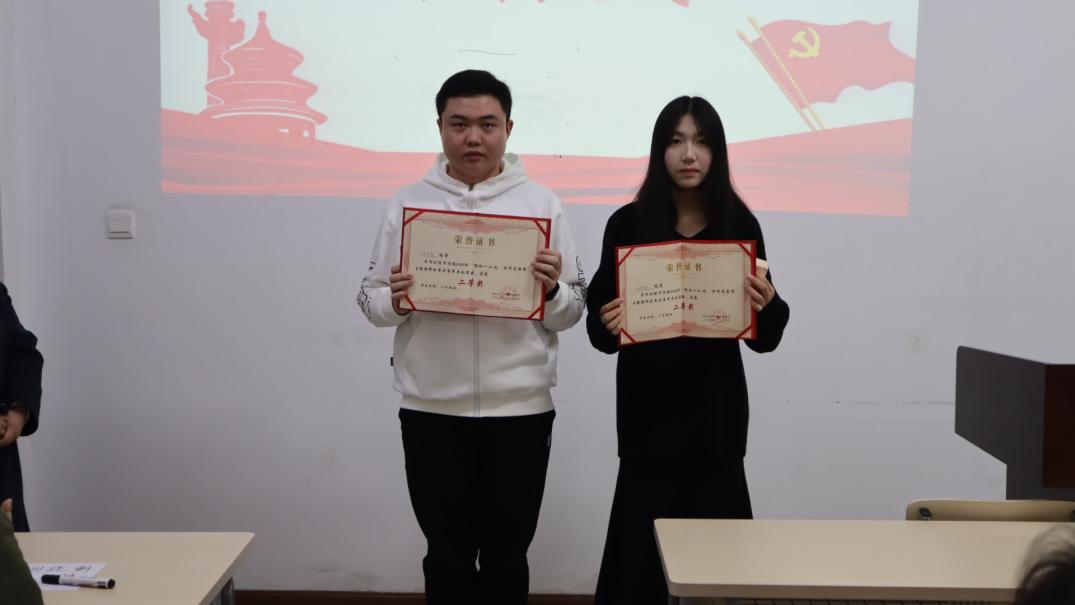 经过激烈的角逐,保险2341班陈冉荣获本次比赛一等奖,金工2241班李咏威、金融2441班江星瑶荣获二等奖,金融2443班陈梓欣、金融2441班王野和金工2241班马绪沛荣获三等奖。活动最后,2138CC太阳集团团委副书记(学生兼职)向晓莉为本次活动致辞。