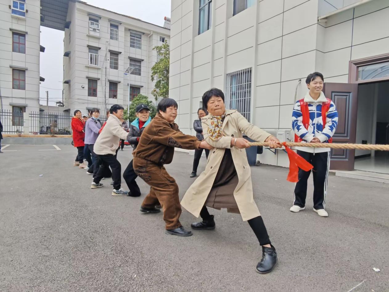 运动会以“健康、欢乐、团结”为主题,设有跳绳、拔河对抗、蒙眼敲盆等特色项目。活动现场气氛热烈,欢声笑语不断,社区群众热情高涨,全身心投入到各个项目中。
