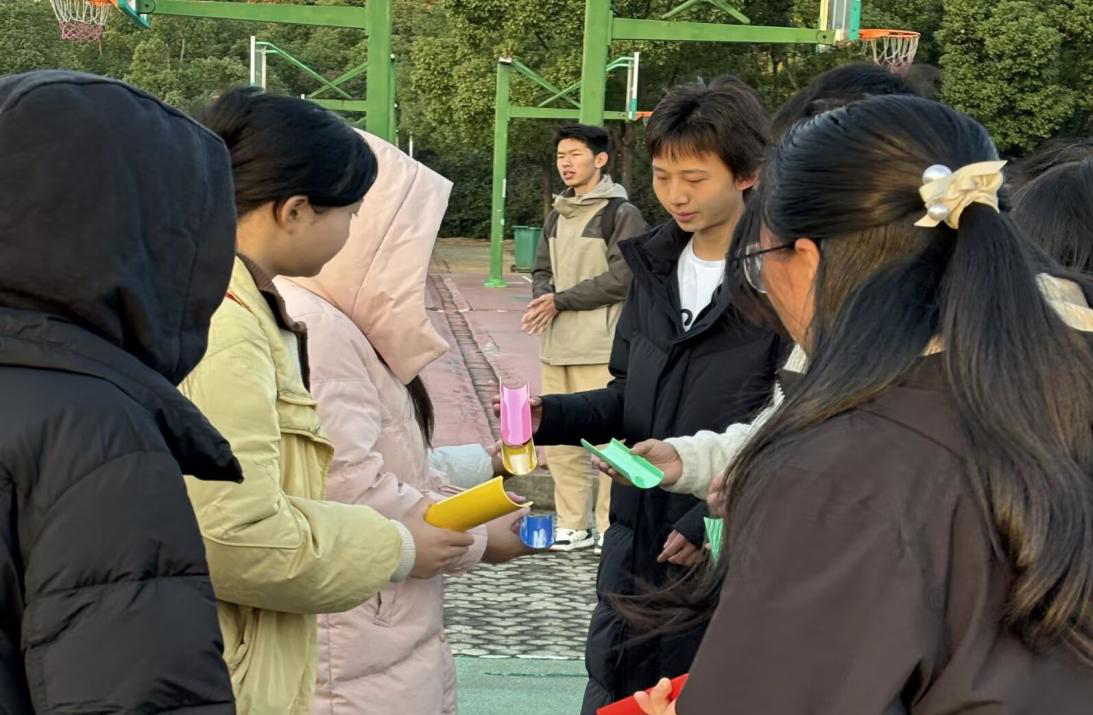 11月27日早晨,各领队带领小组成员开展“珠行万里”小游戏。最后,第一组以二十六秒的成绩获得胜利。