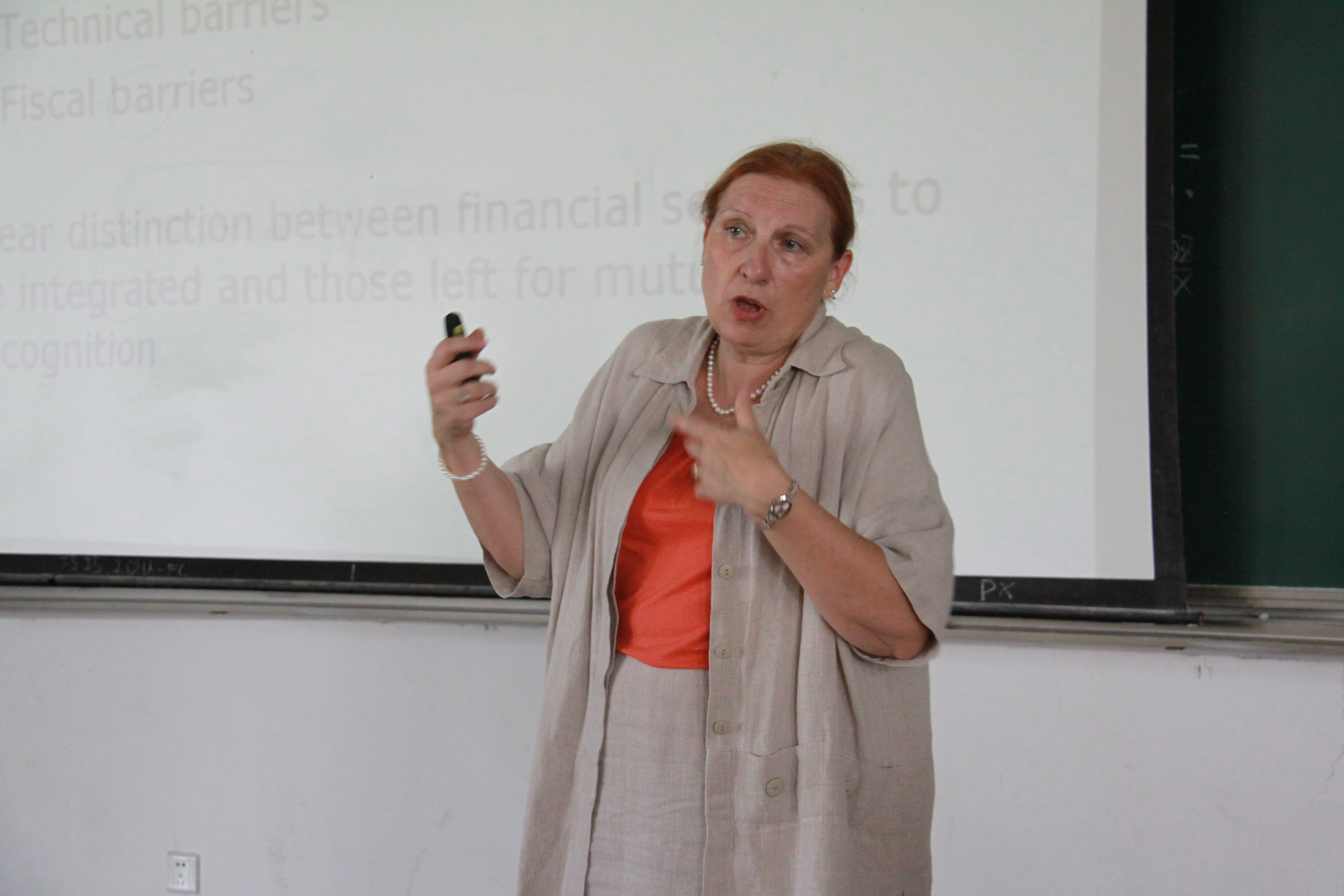 21日,Catherine Lions教授对学院金创Q1141班的全体同学做了一场“美国金融危机及其对欧洲银行的冲击”的报告。她从美国金融危机是如何发生的入手,解释了CDO的基本原理及这场危机的根源,以及巴塞尔协议在这场危机中的作用。