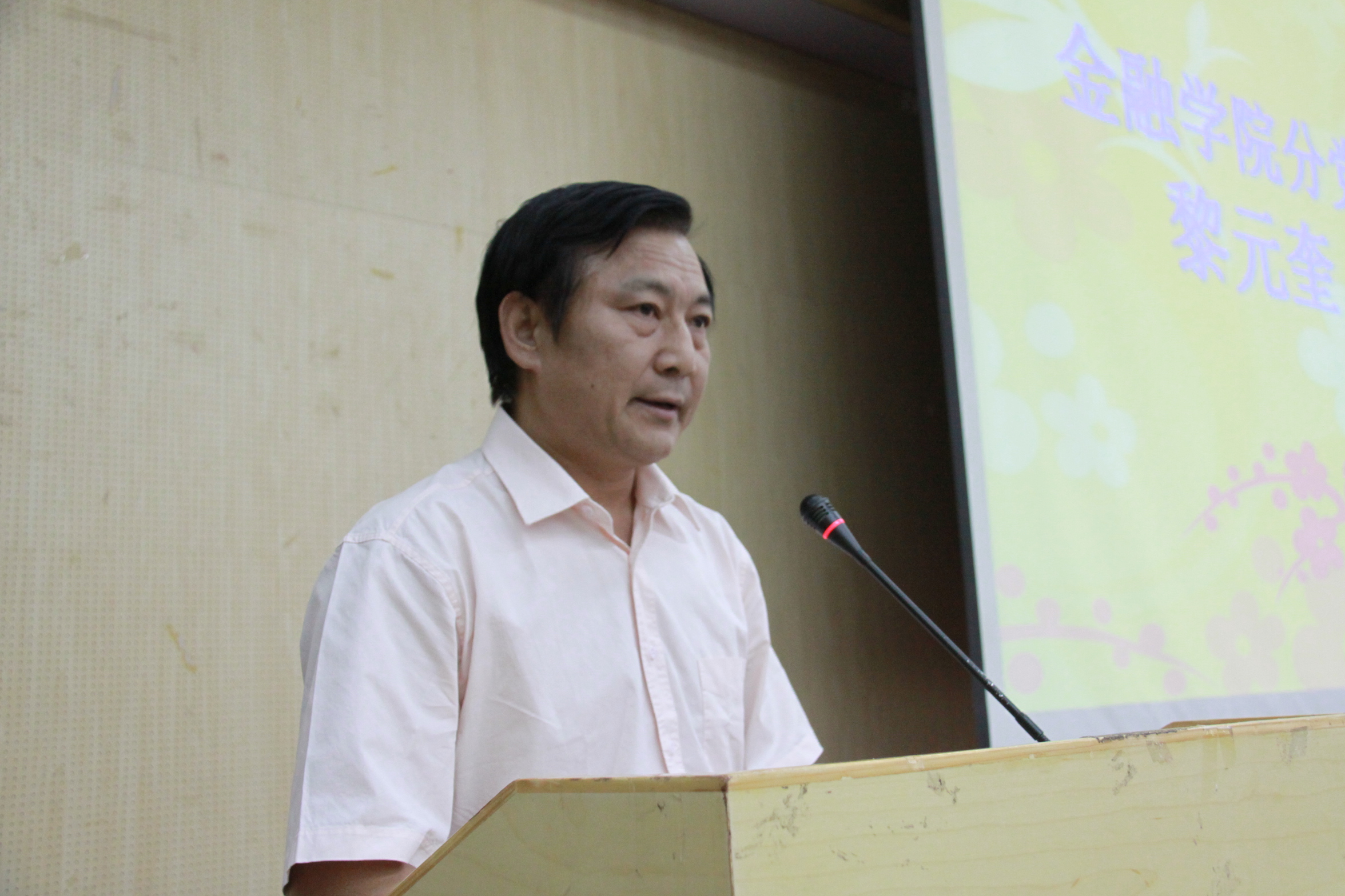 最后,2138CC太阳集团分党委书记黎元奎结合多年的教学经验向同学们提出了三点宝贵意见:第一,要珍惜大学美好时光。大学充满了青春活力,是成就别样人生的重要一步,但大学只有短短四年,所以希望同学们好好珍惜,合理规划四年的学习和生活;第二,要勤奋,要有刻苦学习的精神。金融是现代经济的核心,而金融知识不断更新,发展迅猛,所以没有勤奋刻苦的学习态度,很难进入真正的金融殿堂;第三,要诚信,力争做一个诚实守信的金融专业大学生。黎书记强调,金融的本质是信用,而信用的基础在诚实守信,诚实守信更是社会的基本道德规范要求,全体大学生更要模范践行这一基本的道德品质,争当时代先锋。