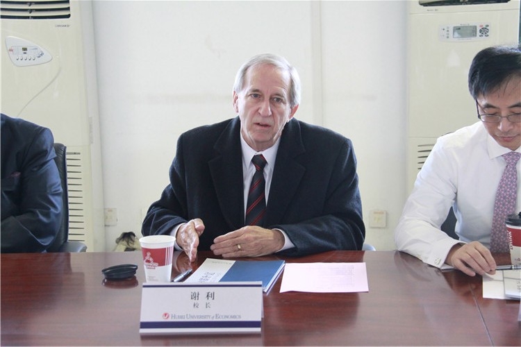 12月16日,美国加州州立大学斯坦尼斯诺斯分校校长Joseph F. Sheley、国家项目部主任Mahmoud Lamadanie以及我校楚天学者邓峰教授来访我院并进行了交流。院长许传华、副院长徐慧玲、副院长高鹏、会计学院副院长邓青,以及2014年暑期赴美游学学生和2015年暑期即将赴美学生参与了交流活动。