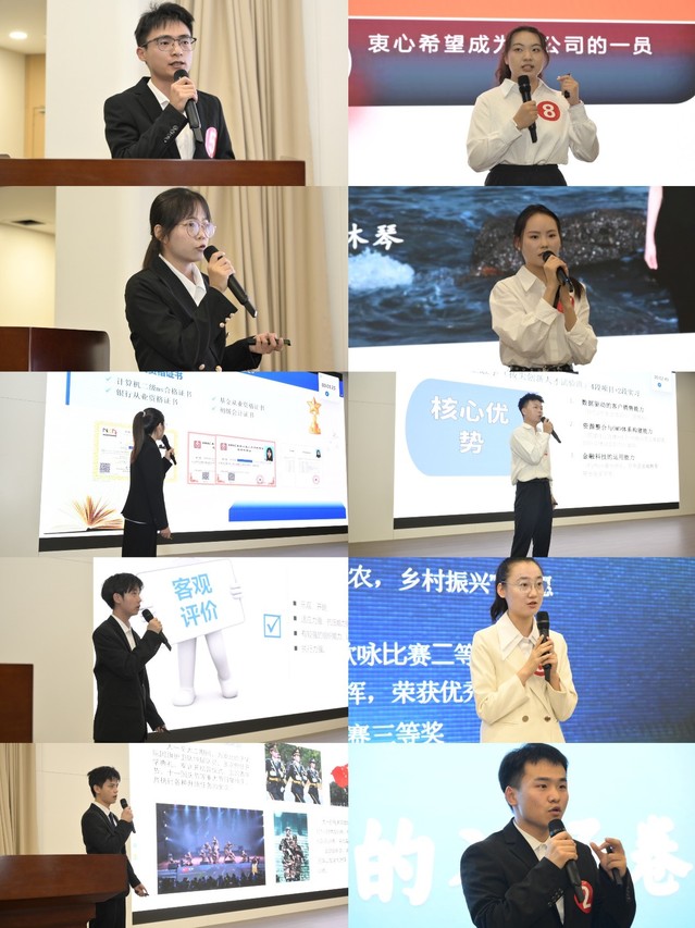 大赛面向全体大三学生,经简历初筛、班主任辅导员推荐、院级内部综合评议等层层选拔,共10名选手进入决赛。决赛设置“自我风采展示”、“专业评委结构化面试”及“无领导小组讨论”三大环节。选手从校园经历、实习实践、个人优势等方面进行展示,突出与目标岗位的匹配度,量化成果,展现核心竞争力。评委根据选手们的自我介绍及简历内容,进行针对性地提问。在无领导小组讨论环节中,选手们围绕案例,展开了精彩激烈的讨论,并在规定时间内形成小组统一方案,评委从团队协作、逻辑表达、问题解决能力等维度评分。