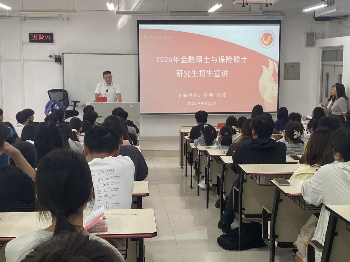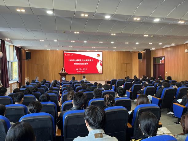 宣讲教师全面介绍了我校与我院的办学历程、特色与优势、导师团队、人才培养成效,并就我院金融硕士与保险硕士2026年招生政策进行了重点解读,对学生们提出的关于复习备考、研究方向选择、未来发展规划等方面问题进行了耐心解答。与会学生普遍反馈,宣讲会信息丰富、重点突出、问题解答透彻明晰,会后对考研决策与备考及后续学业与职业发展有了更清晰的认识和更明确的定位。