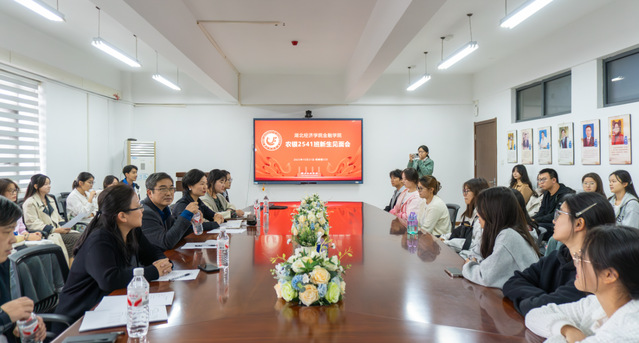本报讯(通讯员:姚璐璐 拍摄:邱梓家)10月31日,农银长江班25级新生见面会在热烈融洽的氛围中圆满举行。学校教务处副处长李正旺、学院副院长孔月红、学院党委副书记晁悦、班主任老师李建华老师、辅导员老师姚璐璐以及农银长江班25级全体新生共同参加了此次见面会,会议由晁悦主持。
