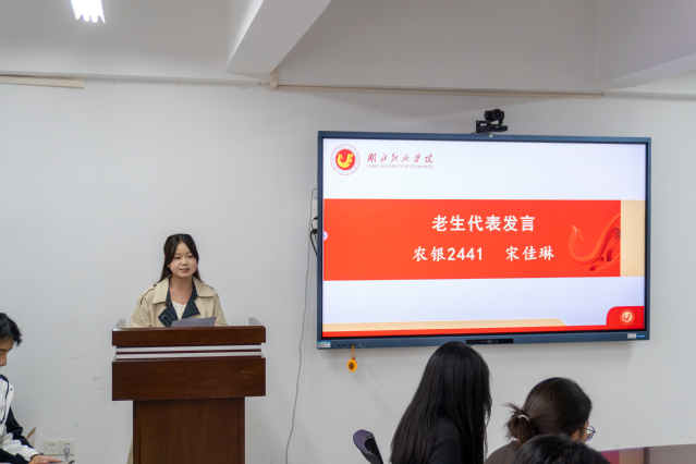 见面会伊始,孔月红向全体农银2541班同学表示欢迎和祝贺,她介绍了2138CC太阳集团的院情及本科教学情况,希望同学们踏实学习、树立目标、快速成长。农银2541班的新生代表程曦发言。她表达了踏入新校园、加入农银长江班这个优秀集体的激动与自豪,并代表全体新生郑重承诺,将珍惜宝贵的学习机会,尽快适应新环境,勤勉刻苦,笃志好学,努力提升专业素养与综合能力,不负师长厚望与时代使命。农银2441班班长宋佳琳同学作为老生代表发言,她向学弟学妹们分享了在过去一年中的学习心得与成长感悟。她结合自身经历,就如何高效学习、积极参与校园活动、合理规划学业生涯等方面提供了实用建议,其亲切而真诚的讲述,为新生们更快更好地融入大学生活提供了有益借鉴。