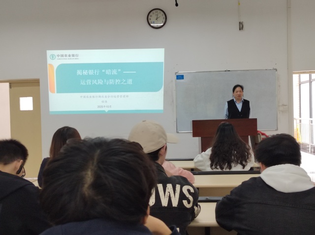 10月30日下午,学院2025—2026学年第一学期第六场“农银业务课”在J5-211教室顺利开展。本次课程由中国农业银行湖北省分行运营管理部单元经理程佳老师主讲,农银2341班全体同学参加学习。