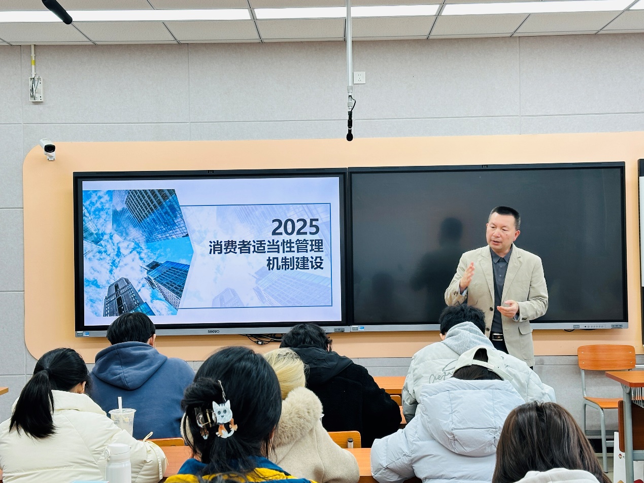 11月20日下午,大家人寿保险股份有限公司湖北分公司首席专家、我校保险专硕校外导师吴兴刚受邀来学院开展“业界专家进课堂”活动,为保险专硕YZ2531班和保险本科2241班全体学生作题为《保险消费者适当性管理机制建设》的专题讲座。