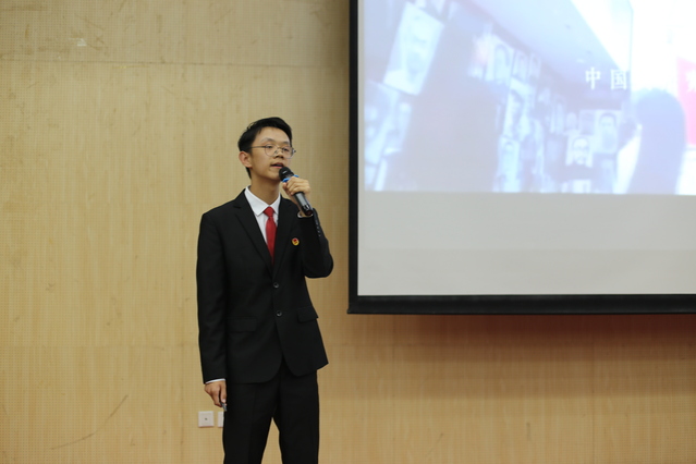 第一位出场选手是金融2045团支部的王小可同学,她以抗战英雄杨靖宇的故事为引,结合身边的故事提出:作为一名共青团员,应不忘初心,牢记使命,用实际行动向伟大的祖国、伟大的党一一献礼,引起了在场同学的强烈共鸣。