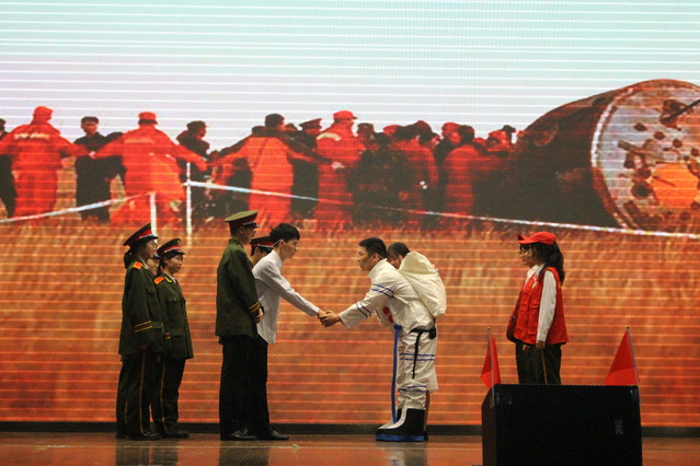 第二阶段,表演阶段,以学院为单位共同表演一个8分钟以内的话剧或舞台剧表演。表演主题按各组事先抽取的主题进行演绎。2138CC太阳集团表演的主题是航空航天。两支队伍携手演绎了一场名为《筑梦苍穹》的话剧,该话剧由《钱学森》和《杨利伟航天传》两个篇章组成,主要讲述了以钱学森、杨利伟为代表的两代人的航空航天事迹,展现了中国航空航天事业所取得的伟大成就,深刻体现了热爱祖国、敢为人先、勇于登攀、敢于超越、团结协作、淡泊名利、默默奉献的航空航天精神。