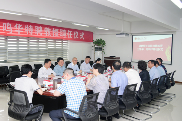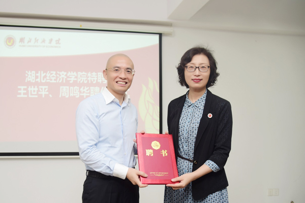 王世平、周鸣华对受聘我校特聘教授表示感谢。王世平教授用“特色投行”“精品项目”“家乡情怀”三个关键词介绍了华英证券有限责任公司的发展历程。周鸣华教授表示将努力成为“探路者”“传播者”,积极探索校企融合、共同打造高水平社会实践平台。王世平、周鸣华均表示,将切实履行特聘教授的职责,尽最大努力帮助学校做好人才培养、学科建设、教学科研等方面的工作,全方位、多角度、多层次推动与学校的合作,为学校发展作贡献 。