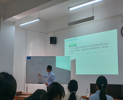 本次授课主题为“信贷基础知识概述”。张老师先从信贷概述引入,首先为同学们介绍了信贷的基本内涵与整体情况,接着深入地向同学们讲述了信贷法律与监管、信贷制度与管理、信贷运作与流程三方面的内容,最后向同学们讲解了信贷实务中的行业风险分析。